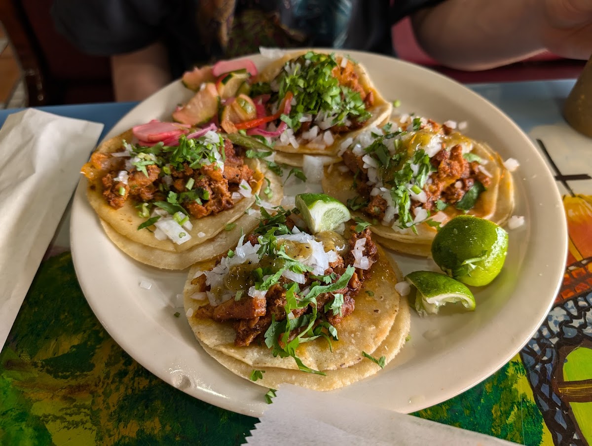 We had a great time at this place with friends. The food was authentic and fresh tasting. The atmosphere was warm and inviting for this kind of restaurant. My only complaint is that our booth along the front windows we're very dark and gloomy. I enjoy mood lighting but this was just lack of light period. Other than that, the food was great and so was the service. Great prices for what we got. The chips and salsa were unique tasting as well. Parking was on the street in front of the restaurant, but I'm sure you can find more parking spot near by if it's busy. The Food shown in the pictures represents the following dishes, 3 tacos, Gordian platter, and chicken fajitas.
